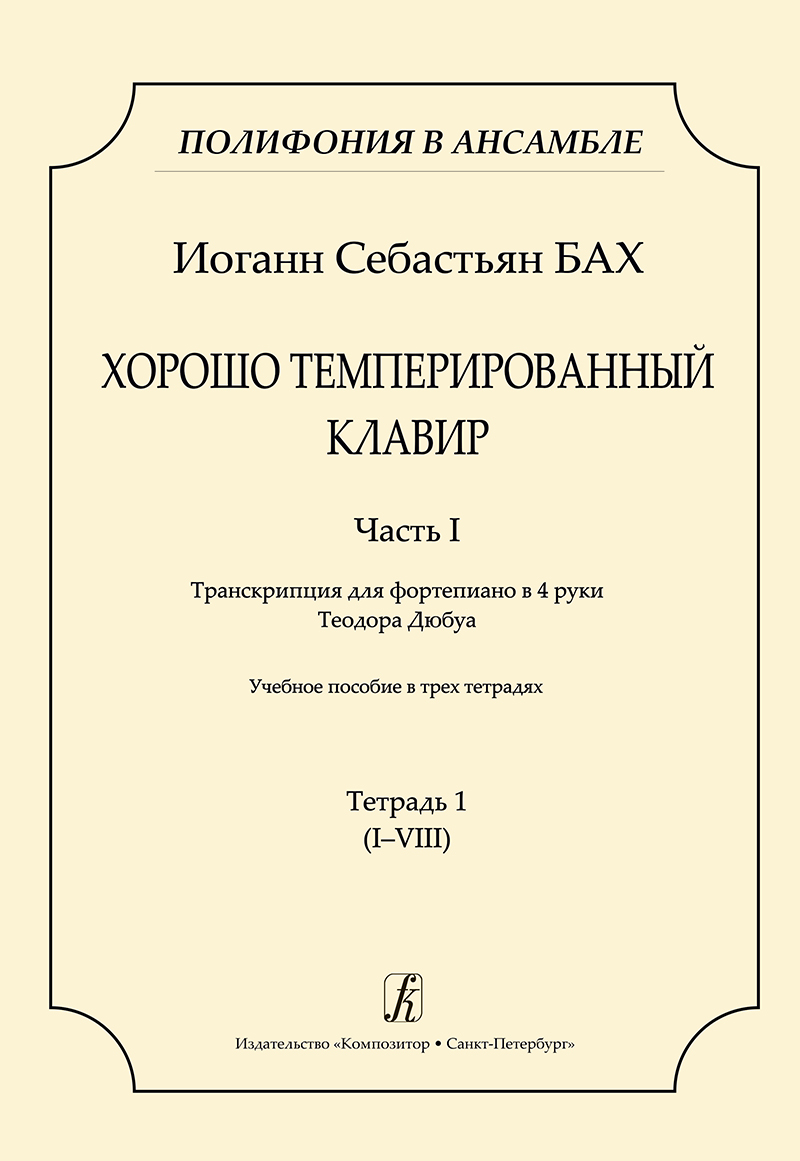 Учебное пособие доцента по кафедре общего курса фортепиано Петрозаводской государственной консерватории им. А. К. Глазунова Т. В. Спиваковой «И. С. Бах. Хорошо темперированный клавир. Транскрипция для фортепиано в 4 руки Теодора Дюбуа» выходит в серии «Полифония в ансамбле» и предназначено для студентов высших музыкальных учебных заведений — как пианистов, так и представителей других специальностей и специализаций.