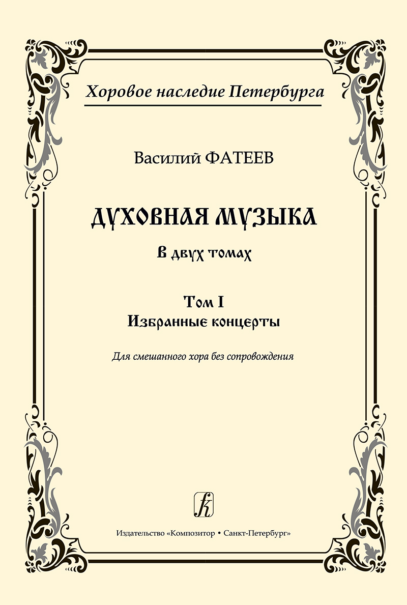 В первый том духовной музыки В. А. Фатеева (серия «Хоровое наследие Петербурга») включены восемь масштабных многочастных концертов. Написанные с безупречным профессионализмом, исполненные философской глубины, они будут по достоинству оценены музыкантами и не только войдут в репертуар богослужебного пения, но и пополнят золотой фонд концертного исполнительства.