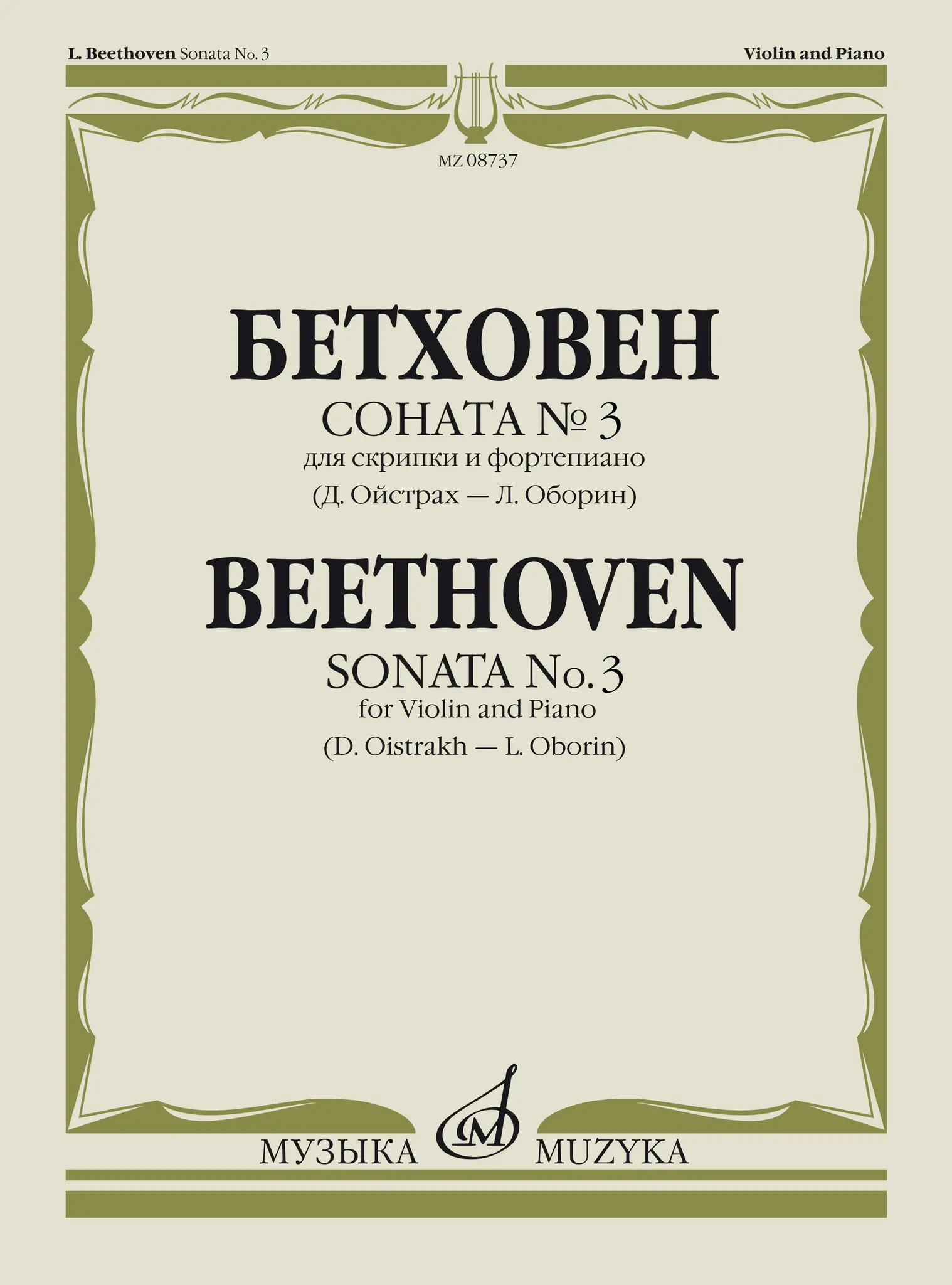 Л. Бетховен. Соната №3 для скрипки и фортепиано. Редакция Д. Ойстраха и Л. Оборина