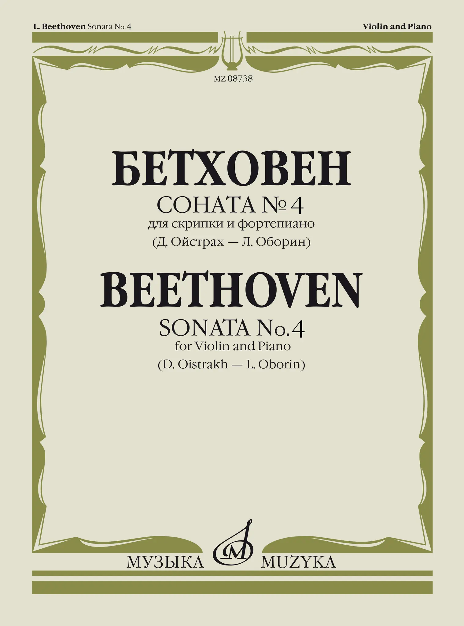 Л. Бетховен. Соната №4 для скрипки и фортепиано. Редакция Д. Ойстраха и Л. Оборина